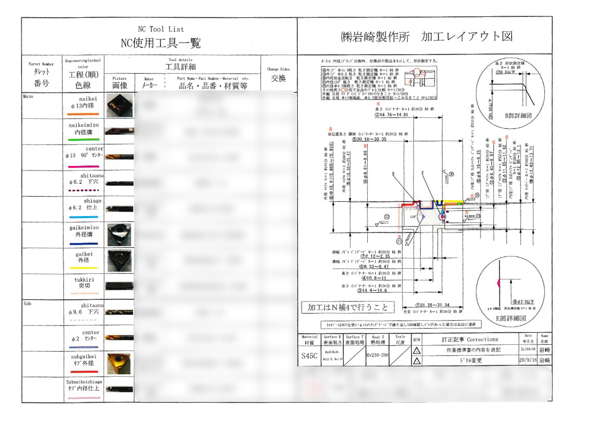 「外径は太くなるのが早いので…」といった、通常は熟練工の頭の中にしかないノウハウや注意点を図面に明記。経験の浅い作業者でもベテランと同じ注意を払えます。